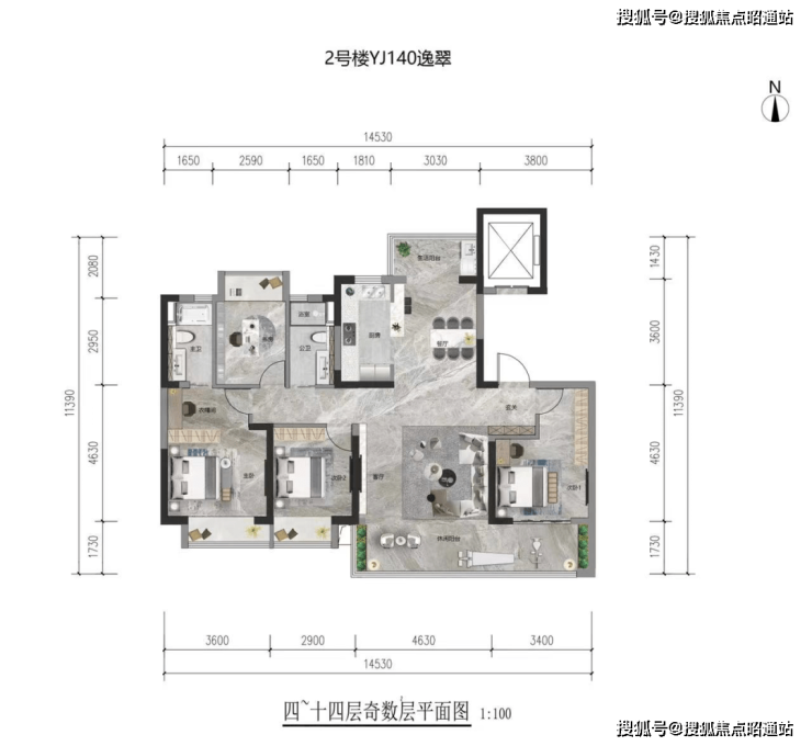 四开间朝南,约8m南向阔绰双阳台,可会客休憩,可养花赏景