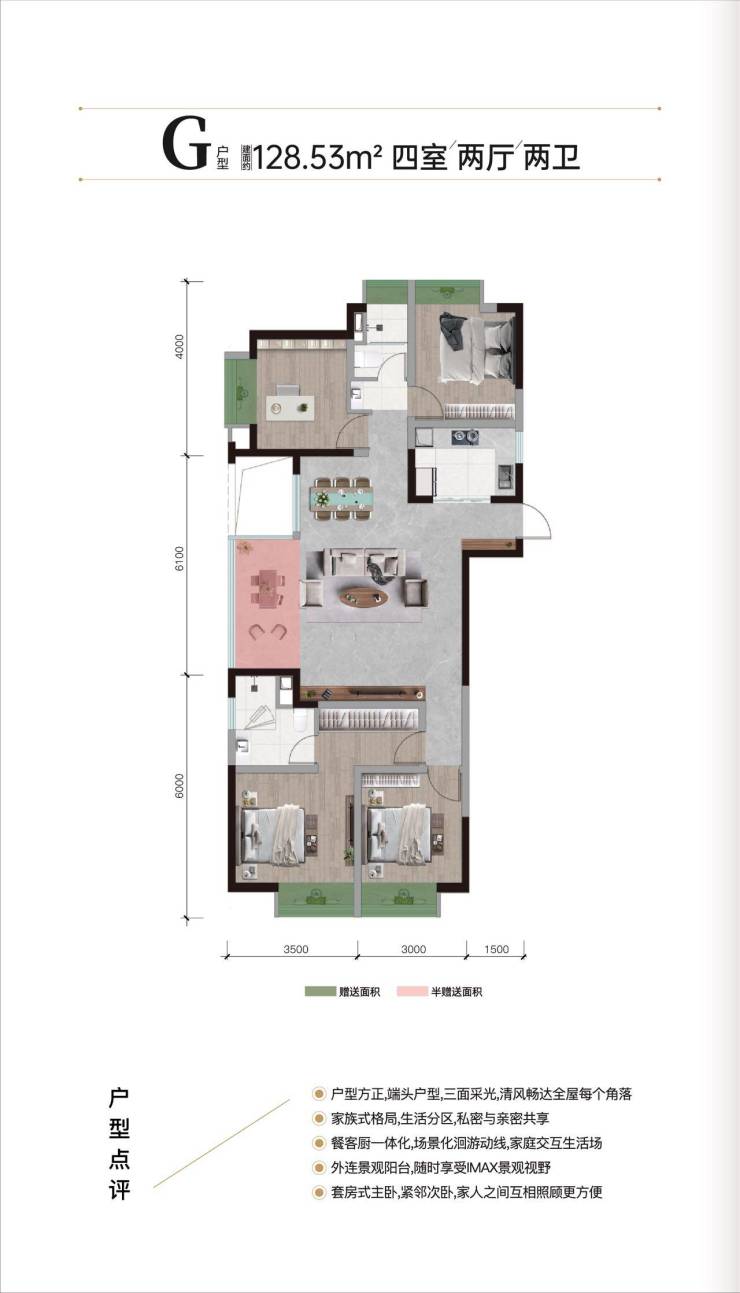 户型设计:提供多种户型选择,如3室2厅2卫(110㎡)、3室2厅1卫(100㎡、95㎡、96㎡)、4室2厅2卫(139㎡)等,满足不同家庭需求。部分户型赠送独立空间,提高实用性。