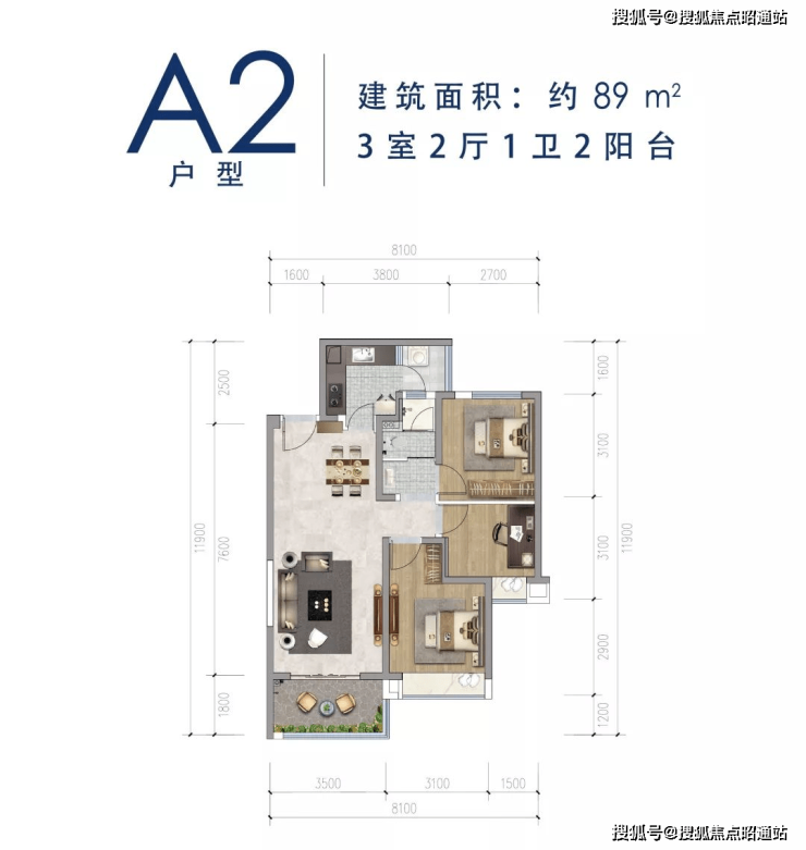 89㎡、、90㎡、93㎡三房一卫双阳台;都市白领首选