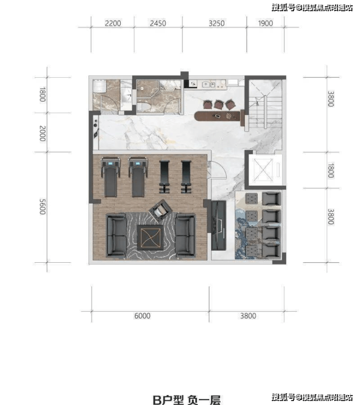 负一层:地面花园和地下车库双入户设计,娱乐/影音室布局,私密性较好;