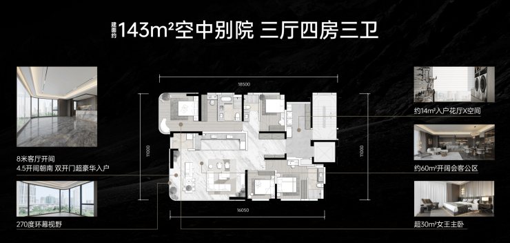 建面约143㎡空中别院 四室三厅三卫