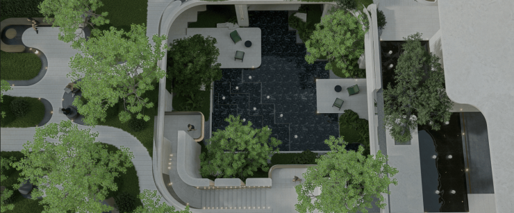 双空中庭院双景围合,营造自然栖居社交雅境