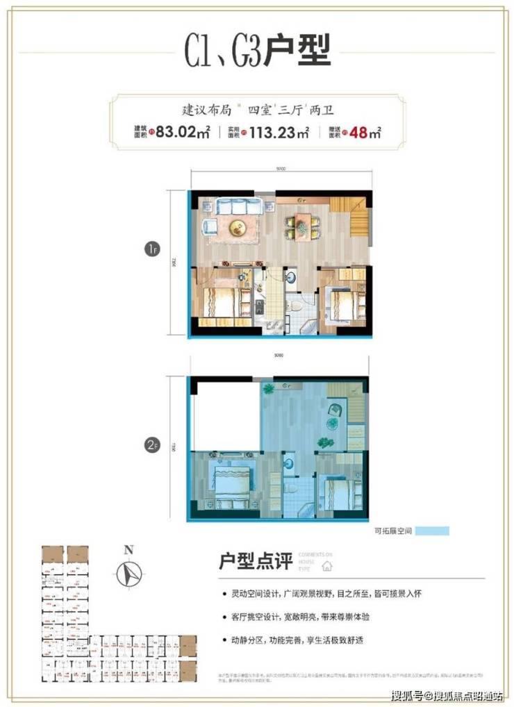 主力户型:88-155㎡三至四居(飘窗设计),复式164-382㎡