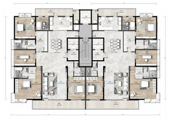 有4T9户、2T4户、3T2户,均为毛坯交付