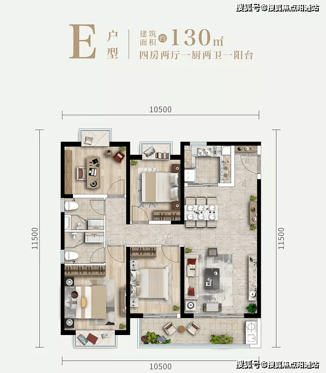 建面约103-130㎡纯板品质3/4房,2梯4户