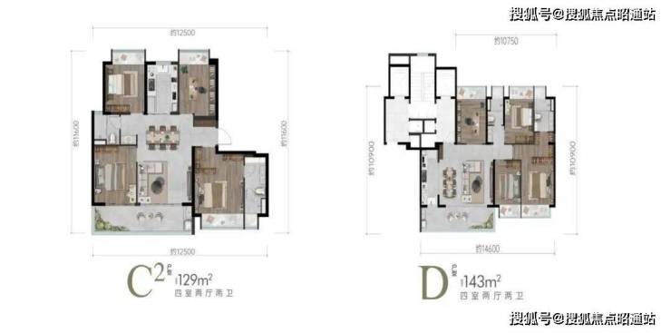3、产品:2梯2户,电梯独立入户,115-143平米户型,均为大三房以及大四房产品;