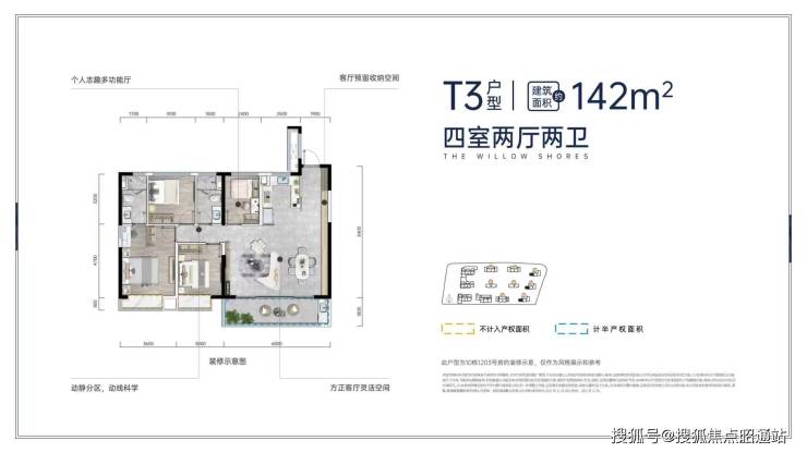 建面约142㎡(T3)全优南向奢阔四房 2T3户尊崇的私人领域|270°采光|宽幕横厅