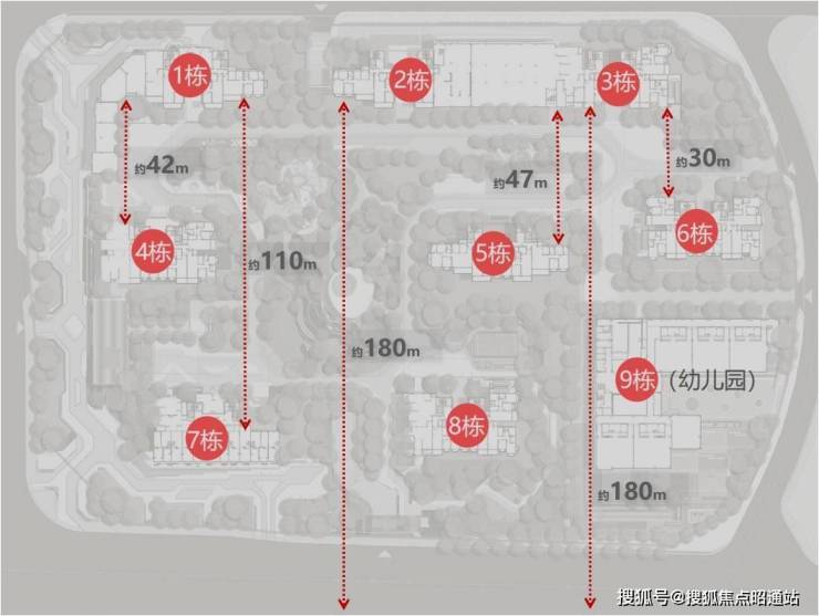 超大楼间距,最大约180米楼间距:更奢阔的视野,更私密的居住体验,更好的采光,更好的日照。
