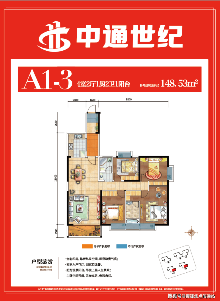 主力户型:88-155㎡三至四居(飘窗设计),复式164-382㎡