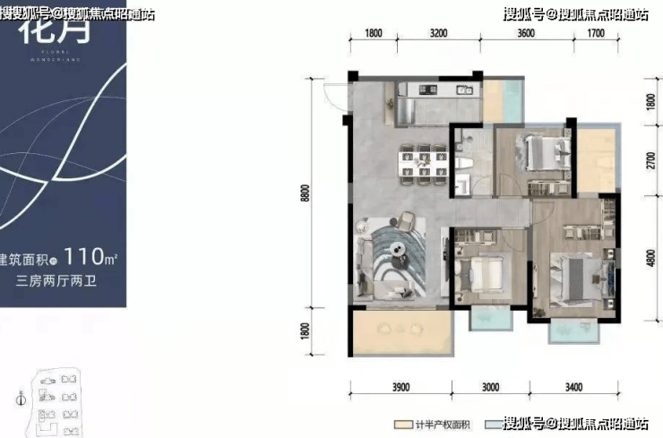 户型建面约72m²—110m²