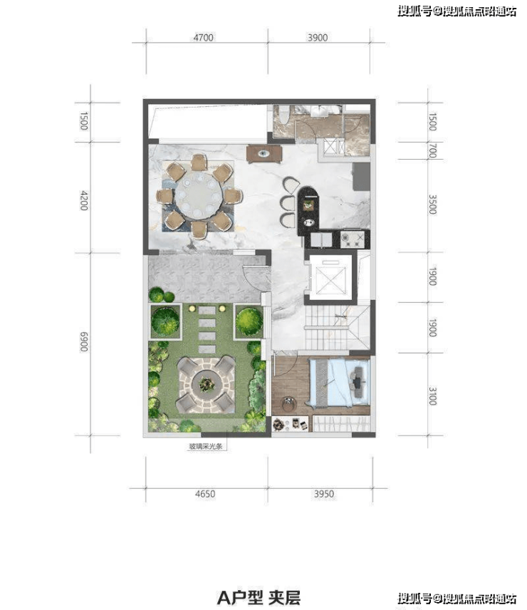 夹层:约6米餐厅开间连接开放式厨房与超大庭院,可改造空间大,双采光面;