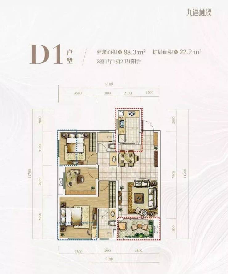 主要产品以高层、洋房、别墅为主:别墅总建面约2.17万㎡,户型面积为89.5㎡和142㎡户型,共233套。