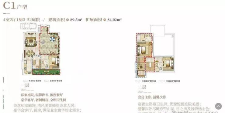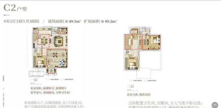 C1 C2 户型 l 4室2厅1厨3卫3庭院 建筑面积约:89.5㎡