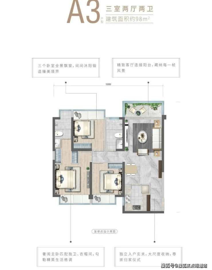 面积段:98㎡/106㎡/107㎡/114㎡/136㎡(4房)