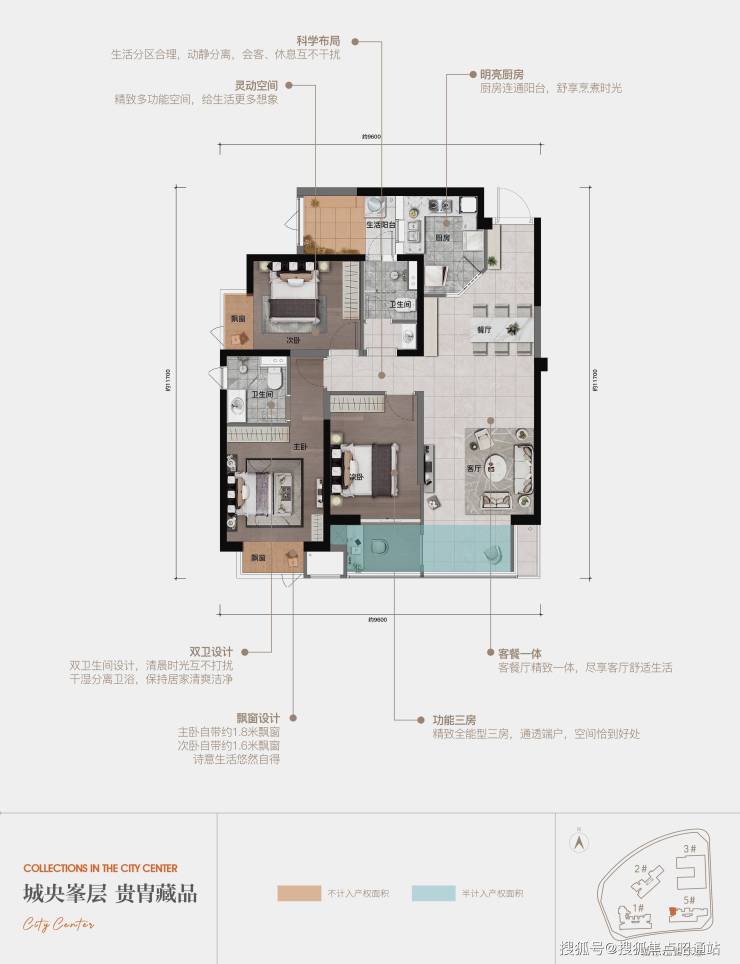 166户型品鉴(约123+43㎡):“4+S”室-两厅-双卫-双阳台,灵活成长型空间,全龄段“无限系”豪宅。阔尺空间,满足全家生活所需,幸福一步到位。