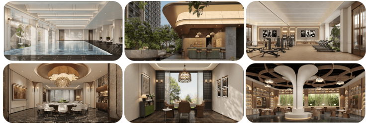 社区配备业主私享星级会所,以及社区生鲜超市、下沉式立体庭院、瑜伽室、恒温游泳池、健身房、书吧、业主餐吧等配套,满足邻里社交需求,拒绝生活孤岛化。