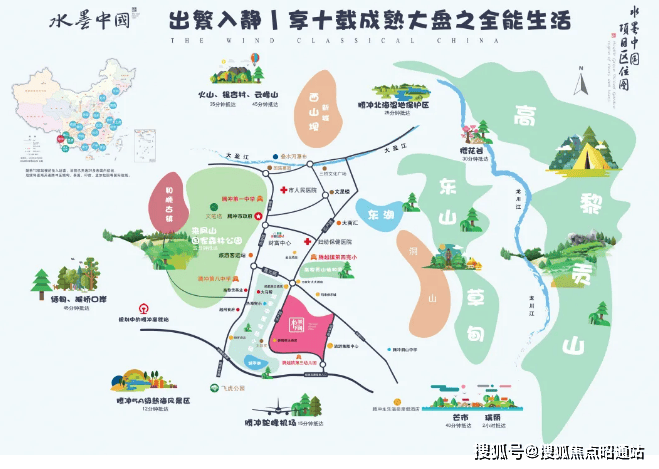 水墨中国坐落于腾冲富有文化底蕴的绮罗侨乡,门口即为将由市政府打造成4A级景区的绮罗中医文旅小镇,这里是腾冲旅游第一站、腾冲首席湖岛温泉养生大盘,毗邻保腾高速出入口、腾冲驼峰机场、腾冲旅游集散中心、热海景区、和顺古镇等交通和旅游资源最优地。
