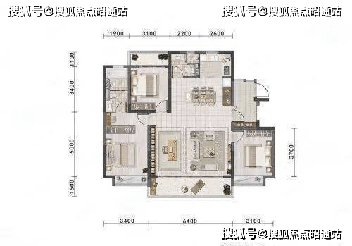 整个户型为三房两厅两卫一厨双阳台的设计,南北通透,且4面朝南,采光通风极佳,户型方正,无论是三口之家还是三代同堂都可以满足居住需求。