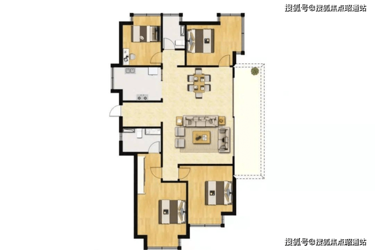 在售产品涵盖三到四房的,可以满足两个孩子家庭的生活需求。其整体房屋类型设计合理,功能分区清晰,动态和静态分区明显,减少了家庭活动的相互干扰。