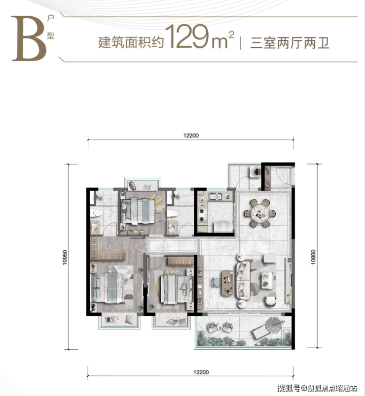 建面约92-102m²精装学府大三房