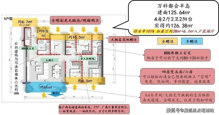 户户朝南,部分户型赠送飘窗及阳台拓展空间