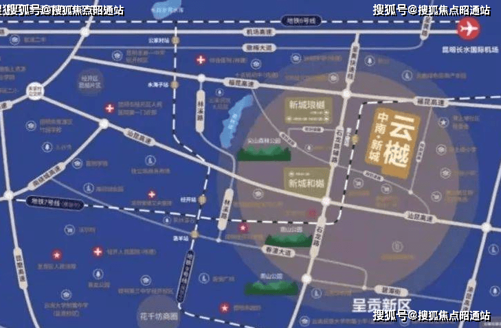 中南新城·云樾位于昆明经济开发区324国道与石龙路交叉口。根据黄土坡区的功能定位,黄土坡区结合了良好的土地利用条件和自然生态环境,对生活和生活服务设施用地进行了集中布局,形成了优质配套区域,主要开发生活和商业等生活服务。