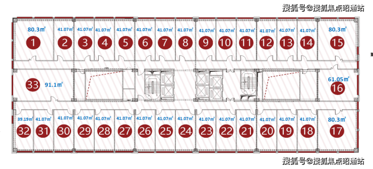 G栋每层公寓共计33套。