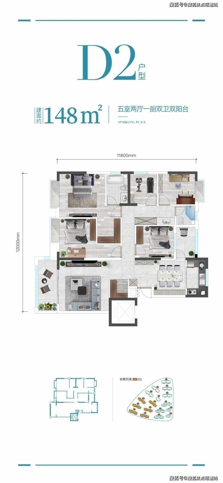 148㎡五房两厅一厨双卫双阳台,稀缺五房设计,实用性不二之选,满足三\四代居住需求,餐客厅分离设立杜绝气味干扰,主卧独立衣帽空间更多尊崇享受,厨房直连生活阳台洗晒便利