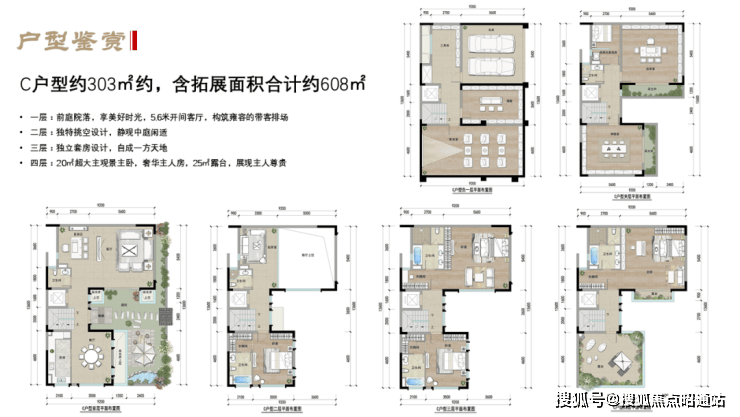 产品:A户型:190㎡产权面积约280㎡;B户型:213㎡产权面积约310㎡;C户型:303㎡产权面积约490㎡