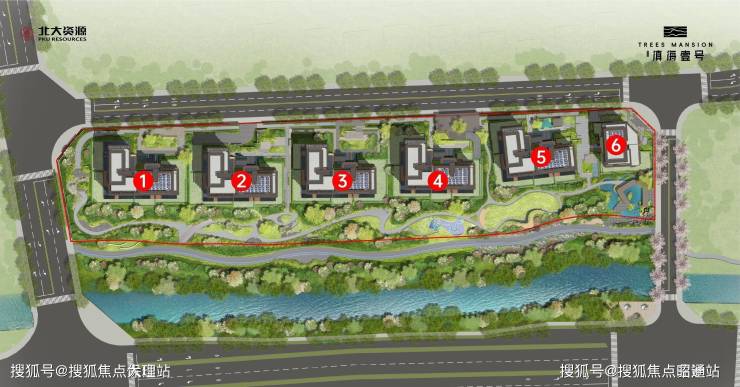 ②内部约2万方隐奢度假园林,充分遵循场地自然基因,将林木、花草、溪谷 、叠瀑……纳入园中,打造专属的前庭(六院)+后院(六幕)+河滨带状公园为一体,融合了自然、人文与全龄活动的一个集生态、休闲、康乐并存的高品质公园式社区。