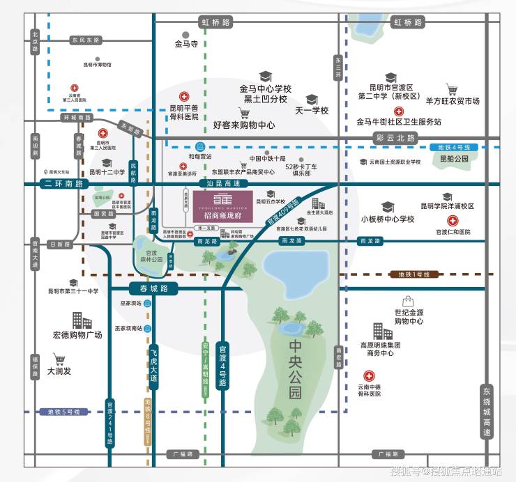 【路】全维交通路网:交通网路,二环南路、汕昆高速、彩云北路、雨龙路;规划6条地铁线路,距离已开通的4号线和甸营站600米;