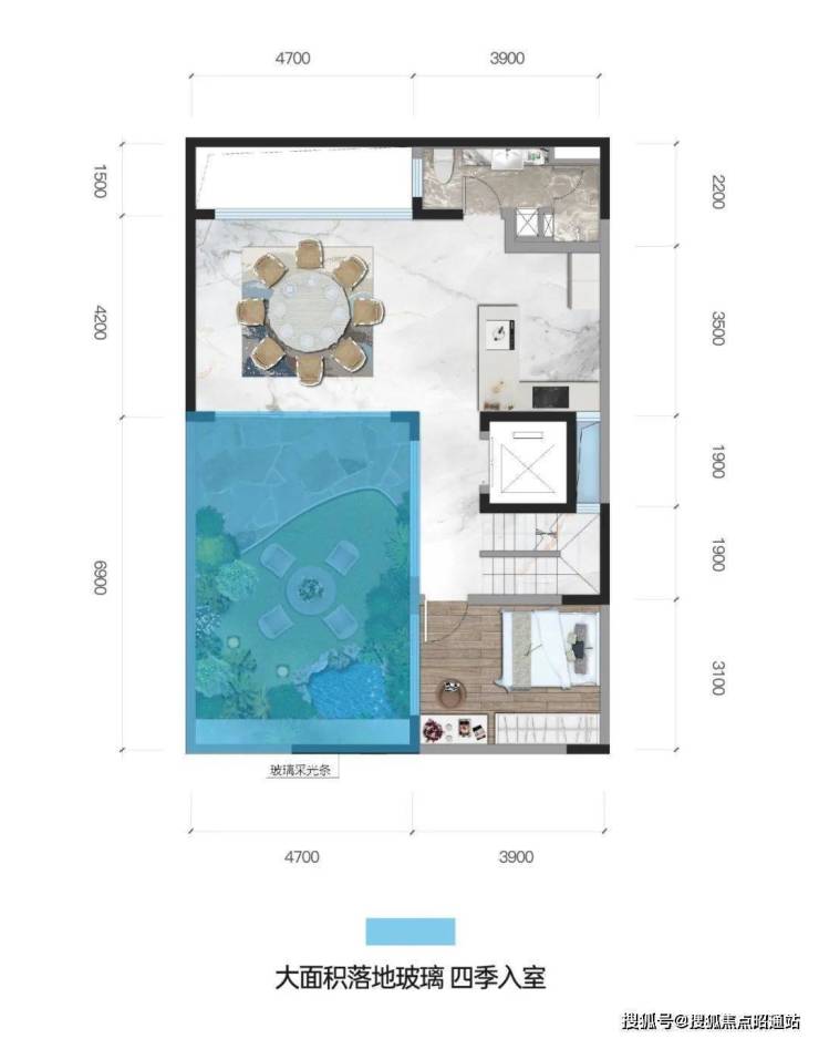 以建面约386㎡户型为例,可以看到华夏阳光在产品上的不懈创新,和真挚的人文关怀,每一层空间的构建,今天,我们从此产品动线出发,还原城市海边院落生活样本的真谛。