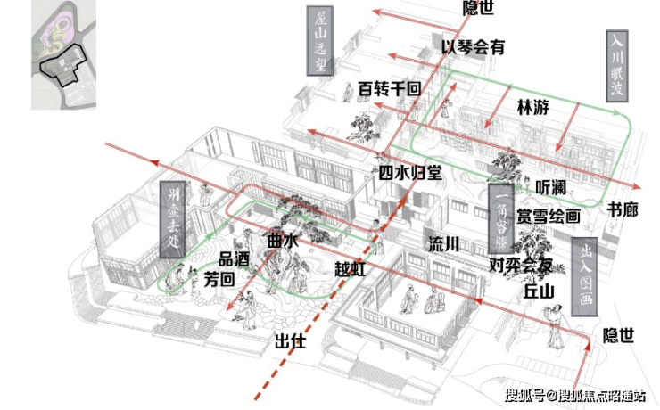 生活的艺术,始于园,承于院,聚于坊。设计意在打造一座富有书卷气息的桃源之所。远出尘嚣,以简练的设计语言,将建筑场景风貌随着展示动线徐徐展开。