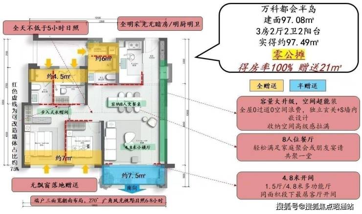 户户朝南,部分户型赠送飘窗及阳台拓展空间