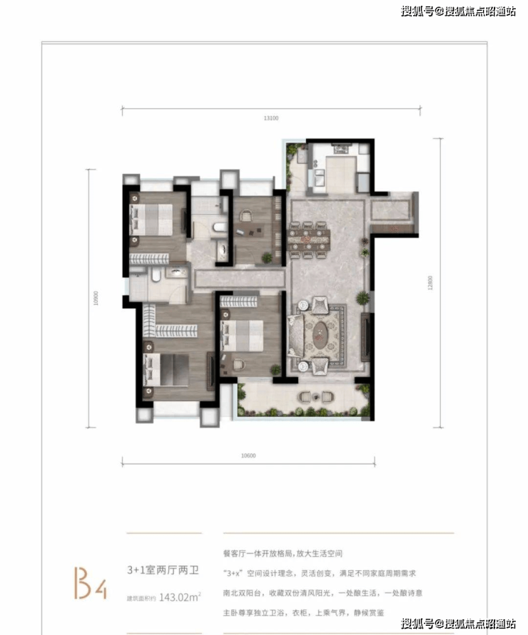 3栋 「4梯6户」 31层,面积127㎡-124㎡-127㎡-143㎡-130㎡