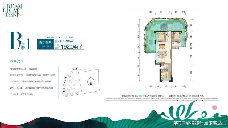 户户花院赠送:每户赠送约 30-76 ㎡花院