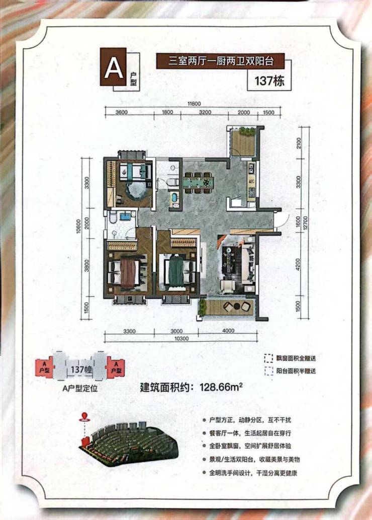 本项目占地约330亩,总建筑面积23万方,绿化率为42.4%,规划以别墅为主,临路部分规划部分高层和洋房,利于减小噪音及灰尘的影响,户户均为南北向设计,采光通风非常好,冬暖夏凉(冬天太阳可以直接照射到厅里,风较小,所以比较温暖;夏天太阳离我们最近,斜度最低,就像在头顶上,很难照进屋子,加上东南风盛行,所以比较凉爽),并且这种项目内规划有水系景观,东西一脉贯通,增强整个社区的灵动性。为与太平新城山水园林和区域内生态服务区定位相融合,整个社区秉承自然、健康、生态、休闲的设计理念,采用意大利托斯卡纳风格进行设计,并融入南加州元素,外立面色彩鲜明,质朴温暖的色调,让建筑生于自然。