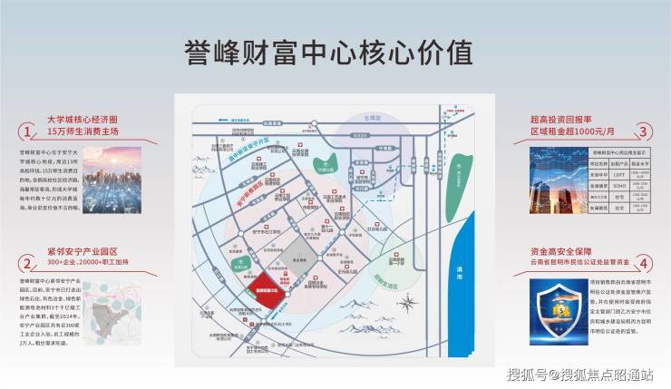 誉峰财富中心紧邻安宁产业园区,目前安宁市已打造出绿色石化、有色冶金、绿色新能源电池材料3个千亿级工业产业集群,截止2024年,安宁产业园区共有近300家工业企业入驻,员工规模约2万人,租住需求旺盛。