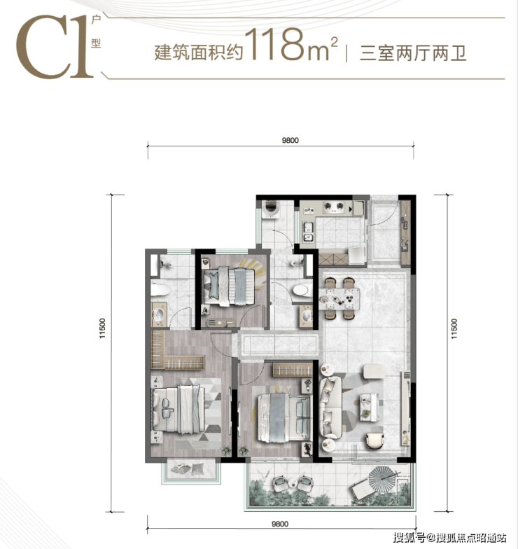 建面约117-143m²板式精装华宅