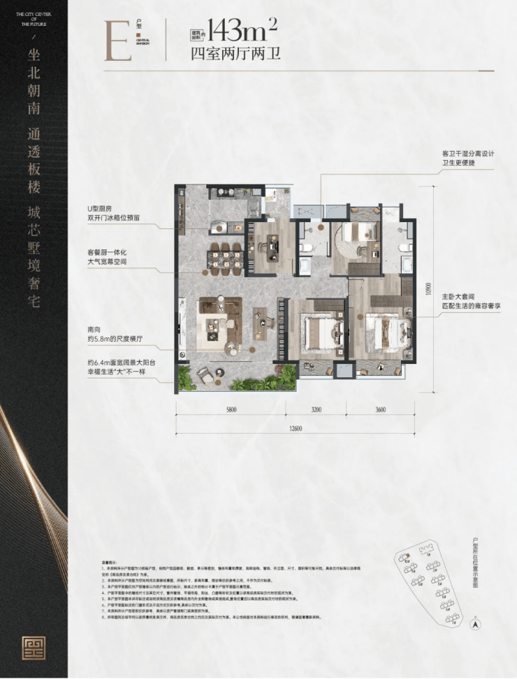 户型设计:主打94-143㎡墅质宽幕奢宅,采用纯板式设计、南北通透、三面宽户型,空间利用率高,满足改善型需求。