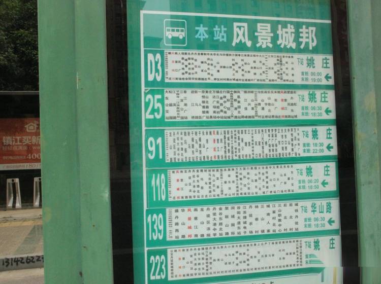 风景城邦(公交站):25路;83路;91路夜班;118路;139路;223路;丹徒新区夜班专线;西环路(公交站):丹徒新区夜班专线;华山路(公交站):139路;丹徒实验学校(公交站):6路;56路;100路;138路;画意江南(公交站):25路;83路;91路夜班;118路;139路;223路;景湖印象(公交站):6路;56路;138路;盛丹路西站(公交站):6路;56路;100路;138路;139路;瑞丹花苑(公交站):6路;56路;138路;丹徒新区夜班专线;姚庄(公交站):25路;83路;91路夜班;118路;223路;丹徒新区夜班专线;盛丹路(爱民路)(公交站):100路;