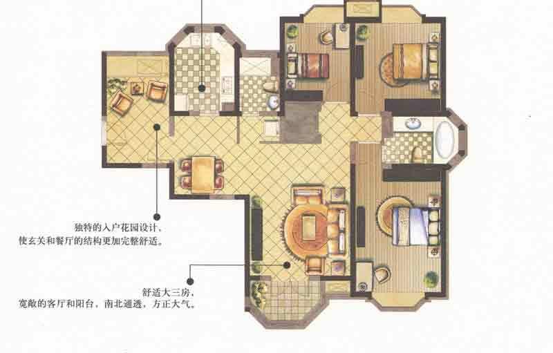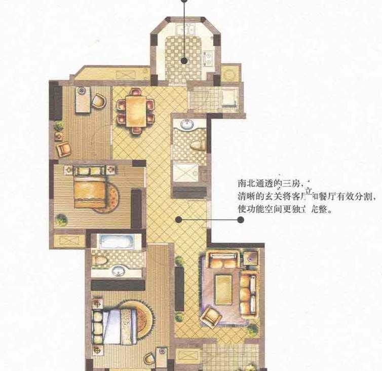 3室2厅2卫-尚海花园5号楼3-7层01室户型