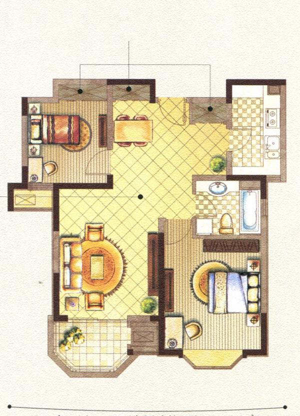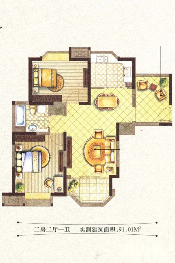 2室2厅1卫-尚海花园6号楼4-15层04室户型