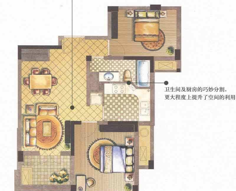 2室2厅1卫-尚海花园6号楼4-15层03室户型