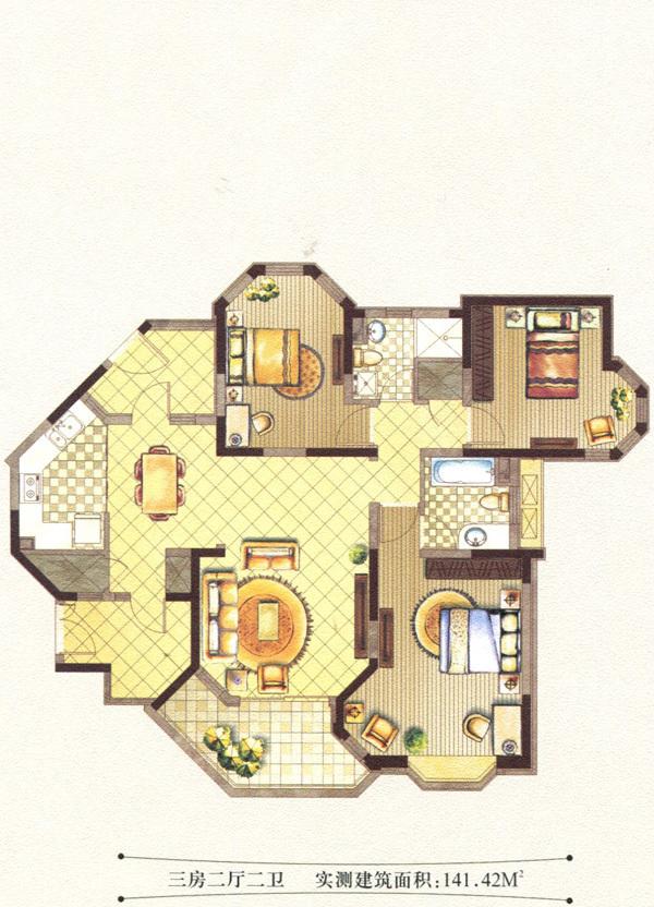 3室2厅2卫-1号楼(C1栋)01室房型D