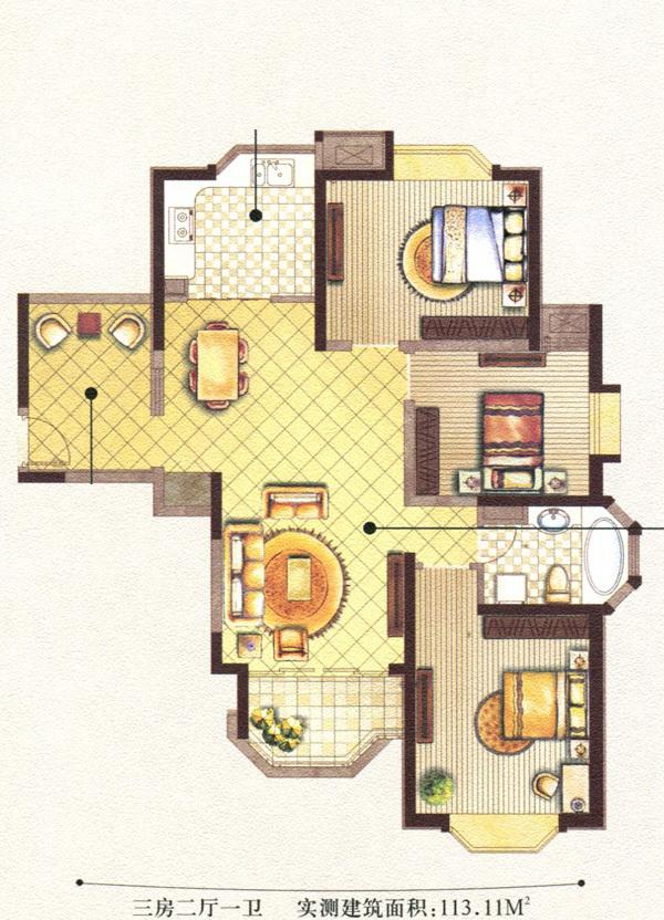 3室2厅1卫-尚海花园6号楼4-15层01室户型