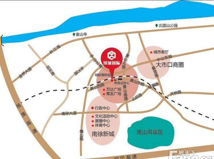 新市行政中心、狮子山公园、万达广场、常发广场、众多银行、沃尔玛超市、苏果超市、中山医院、第一人民医院等、镇江火车站等 自持商业、住宅、办公于一体