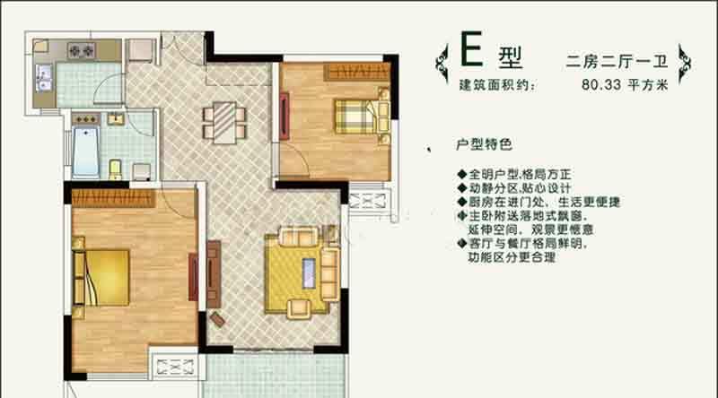 2室2厅1卫-一期E户型