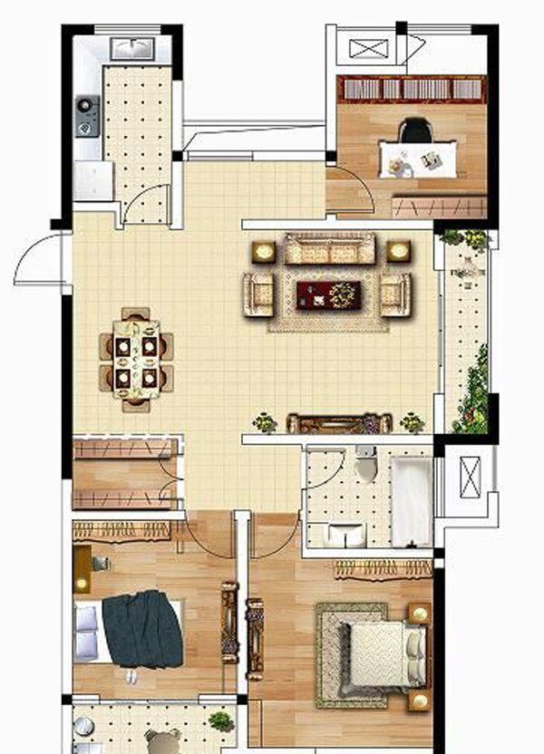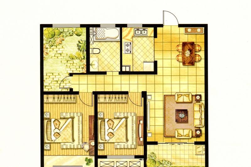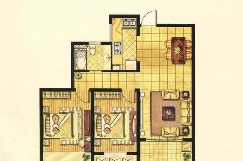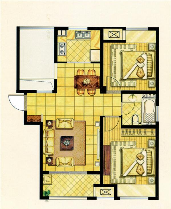 2室2厅1卫-9、11号楼边户100㎡K户型