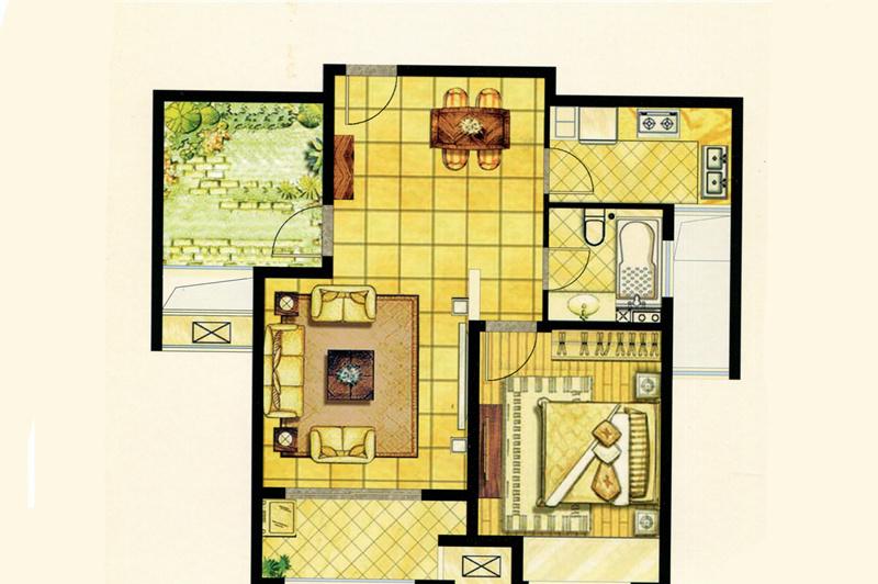 2室2厅1卫-9、11号楼中间户91㎡L户型